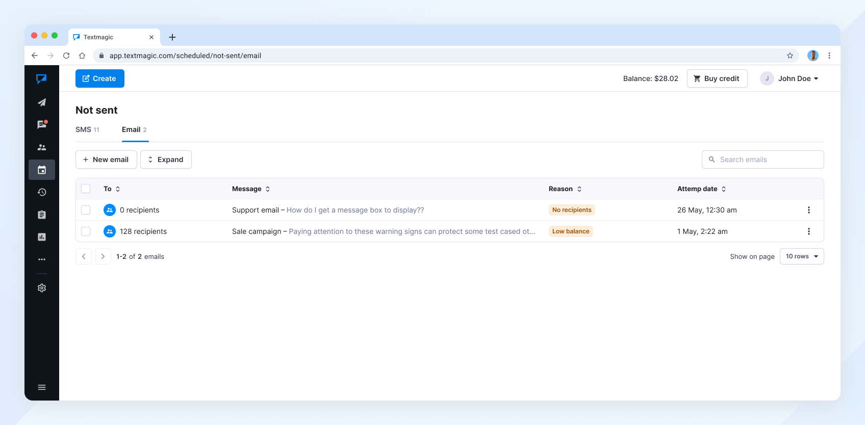 Note: An email is marked as delivered once the receiving server accepts it. Textmagic can’t track what happens after, as that server handles further internal processing.